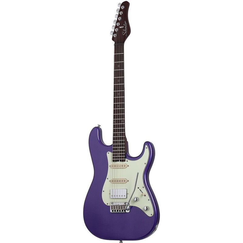 Artikkelnummer 1095336Elgitar, alderkropp, wengehals med ibenholt gripebrett, HSS-pickuper, Atombucker + Subatomic-sett, 22 rustfrie jumbobånd, Schecter Nouveau Tremolo, Atomic Violet-finish.