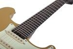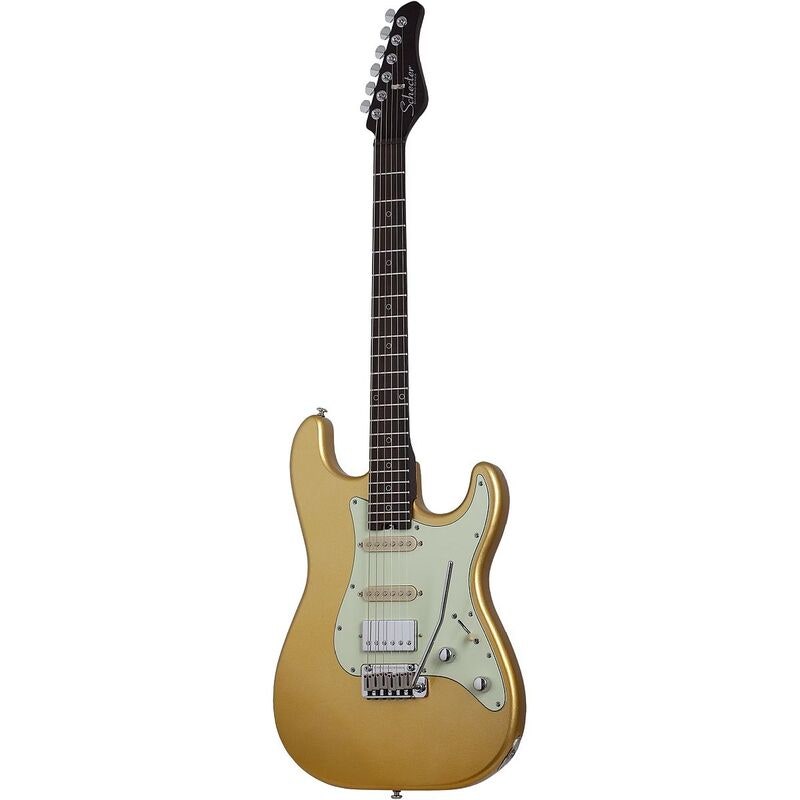 Artikkelnummer 1095335Elgitar, alderkropp, wengehals med ibenholt gripebrett, HSS-pickuper, Atombucker + Subatomic-sett, 22 rustfrie jumbobånd, Schecter Nouveau Tremolo, Atomic Saffron-finish.