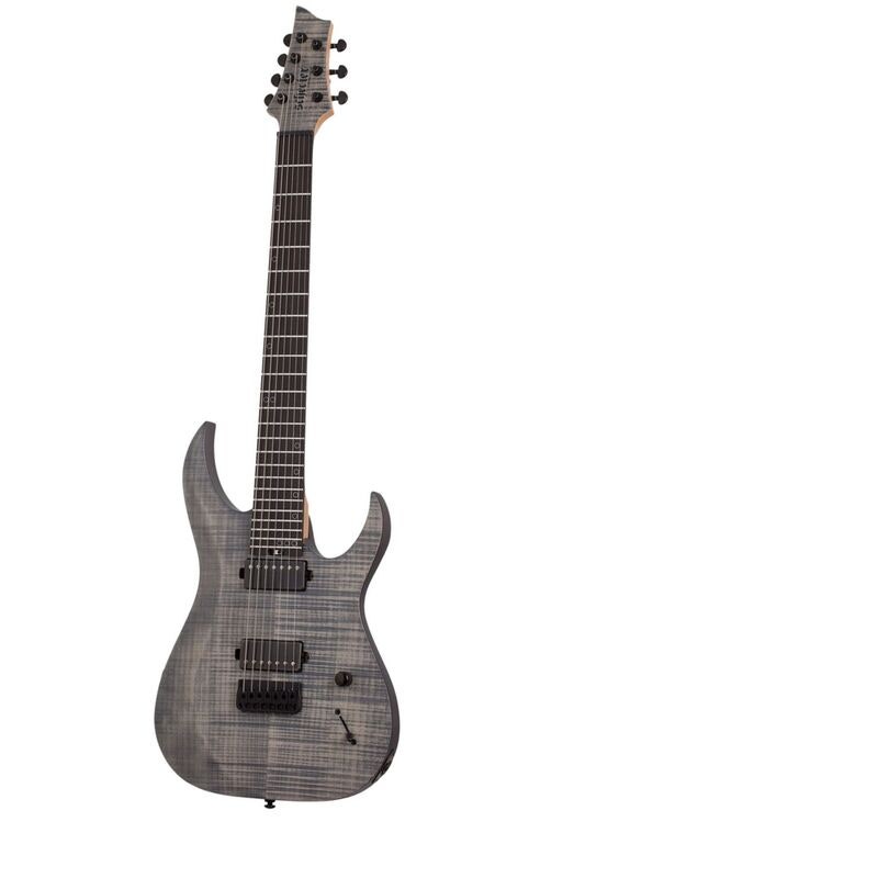 Schecter Sunset-7 Extreme Grey Ghost har en kropp i nyatoh med en flammad lönn-topp. Den 5-lagede lönn/rosentræ-halsen, montert med Ultra Access og en ultratynn C-profil, er godt egnet for tekniske spillere som krever hurtighet og komfort.
