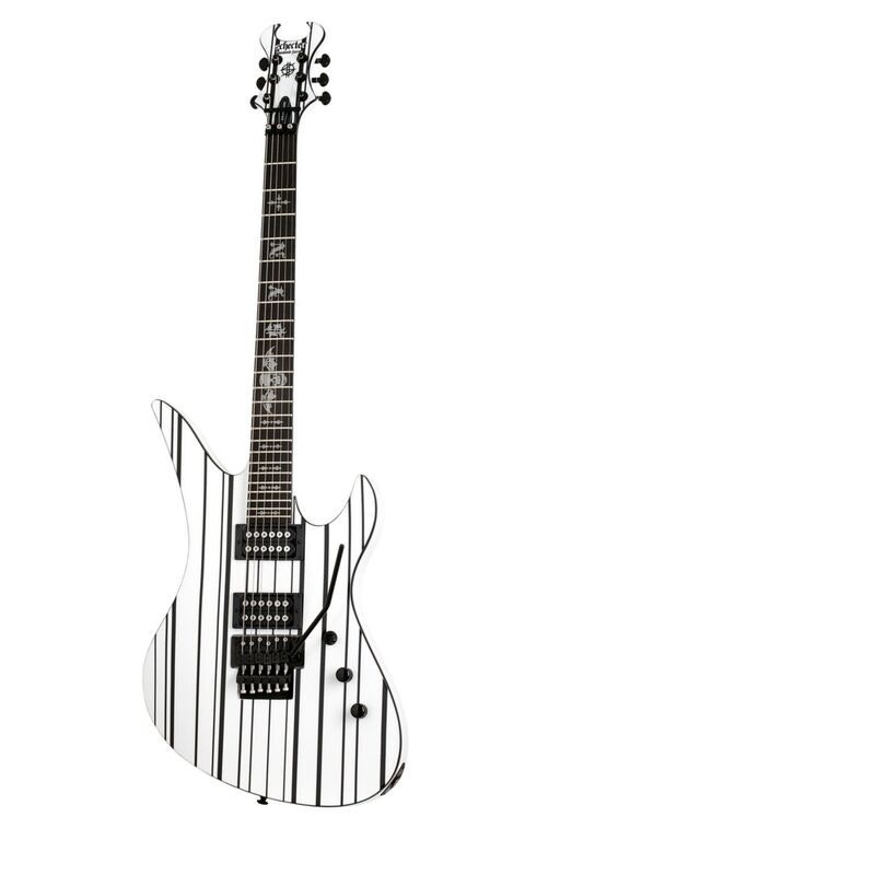 Schecter Synyster Standard White/Black Stripes: 6-strängad elgitarr med Synyster Gates Signature pickups og svarte/vit-striped