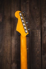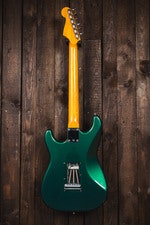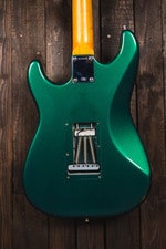 Denne Fender American Vintage ’62 Stratocaster i Sherwood Metallic kombinerer ekte 60-tallsfølelse med oppgradert lydfleksibilitet. Modellen er kjent for sin lette, resonante alder-kropp, en komfortabel ’62 C-halsprofil og et vintage tremolo som reagerer presist og musikalsk.