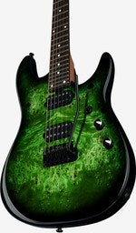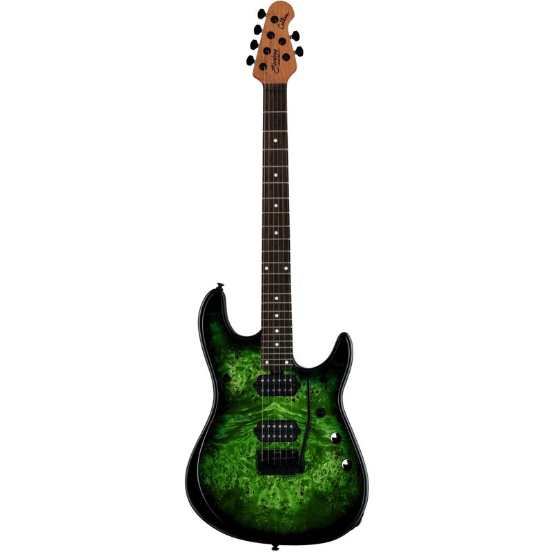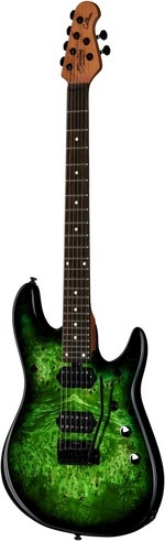 Artikkelnummer 1097177Elgitar, 7‑strengs, kropp i or, poppel burl‑topp, hals i ristet lønn, gripebrett i rosentre, SBMM JR humbuckere, 12 dB volum boost, låsbar mekanikk, tremolo.