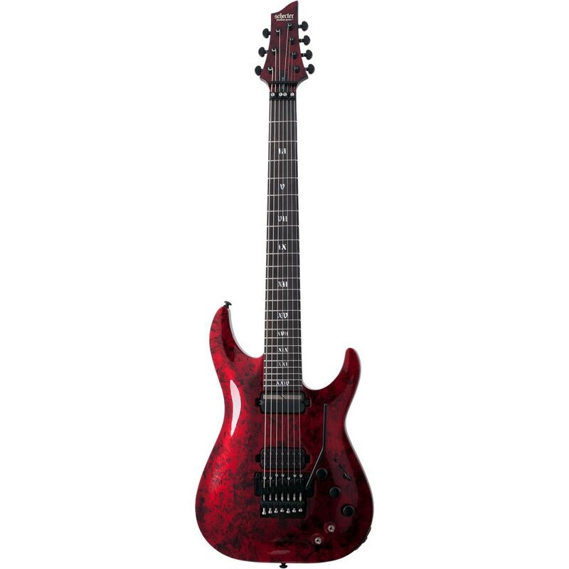 Schecter C-7 FR-S Apocalypse Red Reign – 7-strengs elgitar med Sustainiac og Floyd Rose 1500