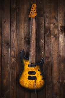 Elgitarr, multiscale, kropp i swamp ash, burltopp, lönnhals, greppbräda i valnöt og ebenholts, hals i ultra...