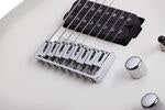 Schecter C-8 Deluxe Satin White er en åttestrengs elgitar med basswood-kropp, bolt-on lønnehals og gripebrett i rosentre. Den har 24 Narrow X-Jumbo bånd, grafitt-nut og Tune-O-Matic-stall med streng-gjennom-kroppen-design. Pickupene er to Schecter Diamond Plus humbuckere.