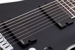Schecter Damien Platinum-8 LH Satin Black – venstrehendt 8-strengers gitar med 28” mensur og EMG 808