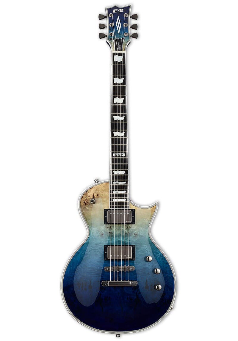 Som en av de peneste, beste lydende og høyest kvalitets single cutaway-gitarene som noensinne er laget, er E-II Eclipse laget i Japan ved ESP-fabrikken, og designet for seriøse musikere som stoler på sine gitarer for profesjonelt scene- og studioarbeid. Denne gitaren tilbyr en samling av topp-komponenter, som en bennut, Schaller Straplocks, Gotoh låsende stemmeskruer, og en Gotoh TOM bro og tailpiece. Kanskje det mest imponerende er settet med EMG 57TW/66TW for spolspliting av hver aktiv pickup med individuelle push-pull kontroller på begge volumknapper. Konstruert med set-thru konstruksjon på en mahogni-kropp og mahogni hals, er den nyeste versjonen av E-II Eclipse tilgjengelig i tre stilarter: en Buckeye burl lønnstopp i Blue Natural Fade finish; en flammende lønnstopp i Black Natural Burst; og en lønn-overdekket Snow White Satin finish. Alle E-II Eclipse-modeller tilbyr høykvalitets designfunksjoner som multi-binding rundt kroppen, halsen og matchende halespeil, og inkluderer en ESP hardhetshus.