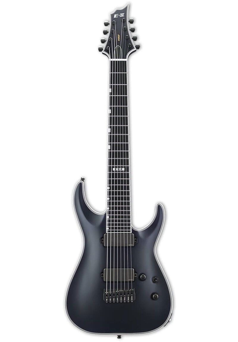 Lagret ved ESP-fabrikken i Japan er ESP E-II HRF NT-8 Baritone en gitar i alle mulige aspekter. En 27" baritone 8-strenget gitar med neck-thru-body konstruksjon, HRF tar design-elementer fra både våre H (Horizon) og F (Forest) gitarfamilier. Vanligstemplet til F#-B-E-A-D-G-B-E, gir HRF NT-8 Baritone et massivt utvidet lavt register for spillere som ønsker å gå utover de vanlige begrensningene til standardgitarer. Den tilbyr en overraskende behagelig alderskropp, kombinert med en tredelt lønnetopp og en ebony gripebrett med 24 ekstra-jumbo bocer. ESP E-II HRF NT-8 Baritone inkluderer en serie komponenter av profesjonell kvalitet, som en bennut, Schaller straplock, Gotoh låsemekanismer, og en Hipshot fast bro med string-thru-body design. Sett med EMG 85-8H (hals) og EMG 81-8H (bro) aktive pickups på denne ekstreme gitaren er spesielt designet for å gi deg rekkevidden av artikulerte og aggressive toner du alltid har ønsket deg. Finnes i Black Satin finish. Inkluderer ESP deluxe formtilpasset koffert.