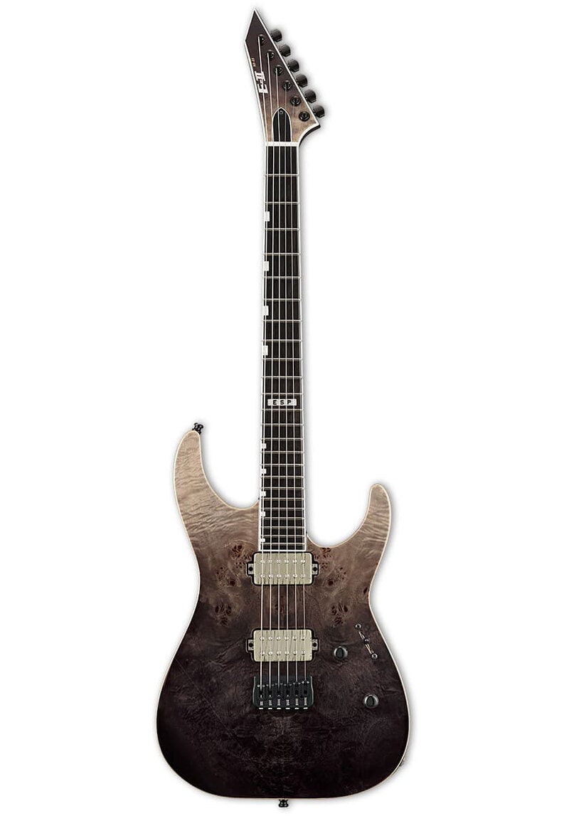 Alle ESP E-II-instrumenter er laget på vår ESP-fabrikk i Tokyo, Japan, og er designet for profesjonelle musikere som ikke går på kompromiss med tone, følelse eller pålitelighet for sine gitarer og bass. ESP E-II M-II NT tilbyr alle tonefordelene med en hardtail Hipshot bro med string-thru body-design i en vakker gitar med Buckeye burl maple-topp og en fantastisk Black Natural Fade finish. Den har en 3-delt maple neck med satengfinish for en utrolig glatt spillfølelse. E-II M-II NT har også designdetaljer som naturlig body binding, hvit binding på halsen og finish-matched headstock, samt svart hardware. Lyden drives av to direktemonterte Bare Knuckle Aftermath Tyger pickups, som er perfekte for moderne lyder med økt bassrespons, kraftig midrange og presis high-end artikulasjon. Du får også komponenter av høy kvalitet inkludert Schaller straplocks, Gotoh låsemekanismer og en benpupp. Inkluderer ESP hard shell kasse.