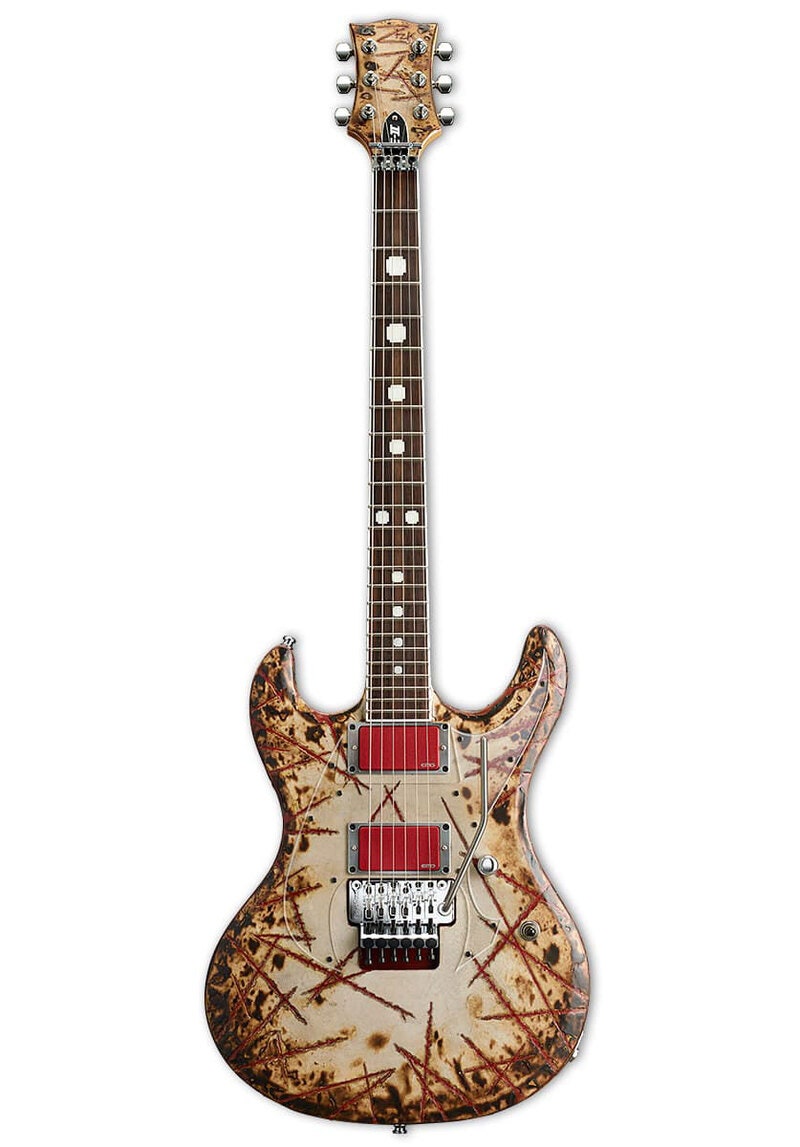 Bygget ved vår ESP fabrikk i Japan, det siste tilskuddet til Richard Z. Kruspe Signature Series kommer i form av ESP E-II RZK-I Burnt. Dens intense utseende reflekterer designeren, medgründer av Neue Deutsche Härte (New German Hardness) bandet Rammstein. E-II RZK-I BURNT har en utrolig distinkt finish, med kraftige syltynne brennemerkingsmerker og hakk over toppen av kroppen og hodestokken. Den unike asymmetriske formen gir utmerket balanse, med en komfortabel, konturert alderkropp og en satinnfinish mapel hals med rosewood fingerboard, 24 extra-jumbo bånd og hvitt halsbinding. E-II RZK-I BURNT er en neck-through-body design med 25,5