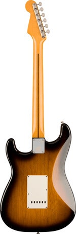 Dette utstyret har en trio av Pure Vintage '57 Stratocaster pickups, bølgende kroppskonturer og en ekstremt komfortabel “V”-formet hals med en radius på 7.25” og maplelakkfingerbord, og reproduserer den essensielle tonen og følelsen av originalen. Andre detaljer inkluderer en vintage-aktuell synchronisert tremolo med kaldvalset stålkube og bøyde stålrioler, single-line “Fender Deluxe” stemmeskruer og en enkelt lag pickguard.