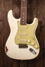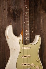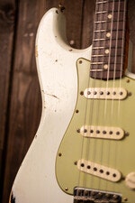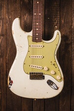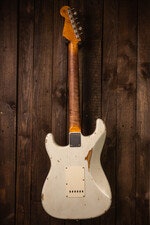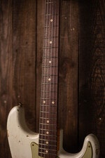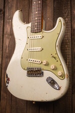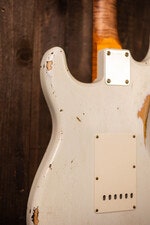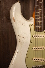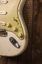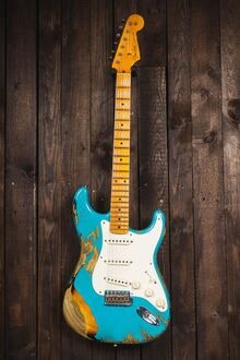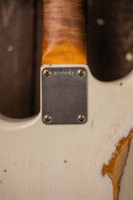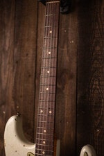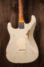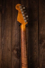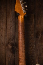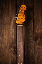 Masterbuilt ’60 Stratocaster av David Brown med relic-finish, HW 60/63-pickuper og AAA flammelønnshals.