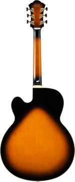 AF2000 er en full hollow-body gitar, med sider og bunn av figurerad Anigre og top av gran, i klassisk brunschatterad