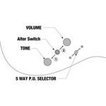 Artikkelnummer 1092913Vänsterhänt elgitarr, 3 mikrofoner (SSH), dyna-MIX 9, Alter Switch, AZES-lönnhals, T-106 tremolo, 250 mm radius.