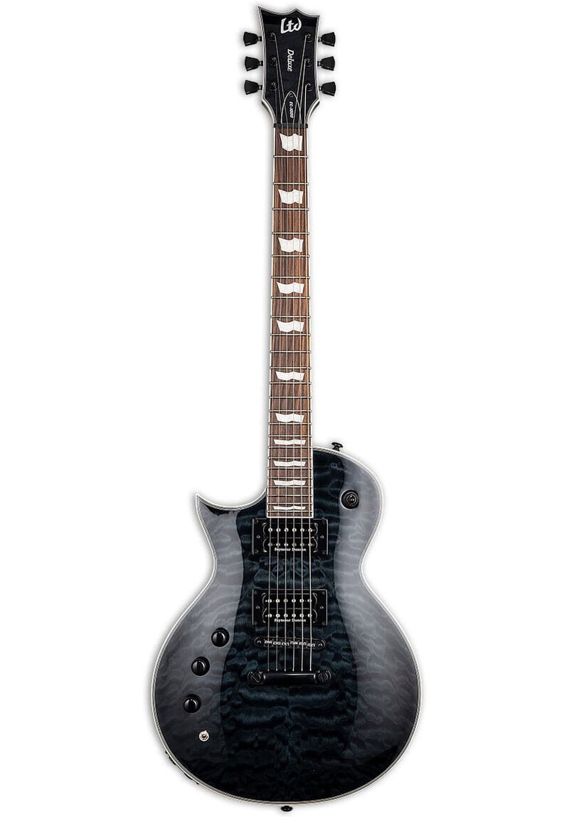 Som en av de mest innovative og allsidige gitarene i LTD Deluxe Series, er EC-1000 PIEZO vår første modell som inkluderer både standard magnetiske pickups og et helt separat piezo pickupsystem. Piezo pickups gir en veldig annerledes lyd enn typiske magnetiske pickups, og tilbyr utmerkede artikulerte, akustikk-lignende toner. Med EC-1000 PIEZO kan du bruke mini-togglebryteren til å velge mellom settet med standard pickups — de utmerkede Seymour Duncan ’59 og JB — og en Fishman Powerbridge og Tailpiece, eller til og med kombinere begge. Dette nivået av lydenes fleksibilitet fortsetter til gitarens doble utgangsbokser, slik at du kan styre pickups til forskjellige kombinasjoner av forsterkere eller grensesnitt på scenen for live-opptredener eller i studio for innspillingsøkter. EC-1000 PIEZO tilbyr en flott quiltet lønnstopp på sin mahognykropp, og er tilgjengelig i See Thru Blue og See Thru Black finish.