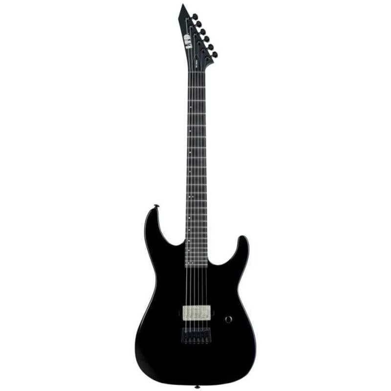 LTD M-201 Baritone HT i Gloss Black-finish tilbyr en kraftfull baritongitarre med 27" skala og bolt-on-konstruksjon. Kroppen ær av mahogny, mens halsen ær en behagelig tredelt lønnhals med rosewood-grepbräde og 24 ekstra jumbo-bånd for maksimal spillbarhet.
