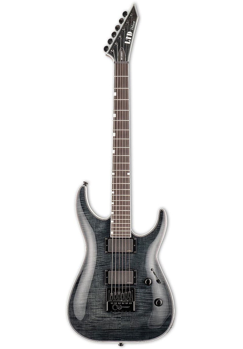 Som del av LTD Deluxe Series, designet for profesjonelle musikere, gir LTD MH-1000 EverTune deg mer enn du hadde forventet. Den har set-through-konstruksjon, noe som betyr at halsen strekker seg dypt inn i gitarens kasse, noe som gir enestående tilgang til de øvre båndene med en jevn overgang ved hælen. Den har en mahognykropp med en flammende maple-top i finishen See Thru Black, som fremhever den flotte trestrukturen. Den har også en tredelt, tynn U-formet maple-hals, og en ebony-gripbrett med 24 ekstra-jumbo bånd. Eksklusive detaljer inkluderer hvite bindinger og Grover-harmonika. Men MH-1000 EverTune tar det et skritt videre med inkludering av aktive EMG 85 (hals) og EMG 81 (bro) pickup for toner som spenner fra mørke og truende til skrikende og aggressiv. Til slutt sikrer EverTune-constant tension-brua at gitaret forblir i perfekt stemning under nesten alle forhold, og gir utrolig presis intonasjon på hele gripebrettet.