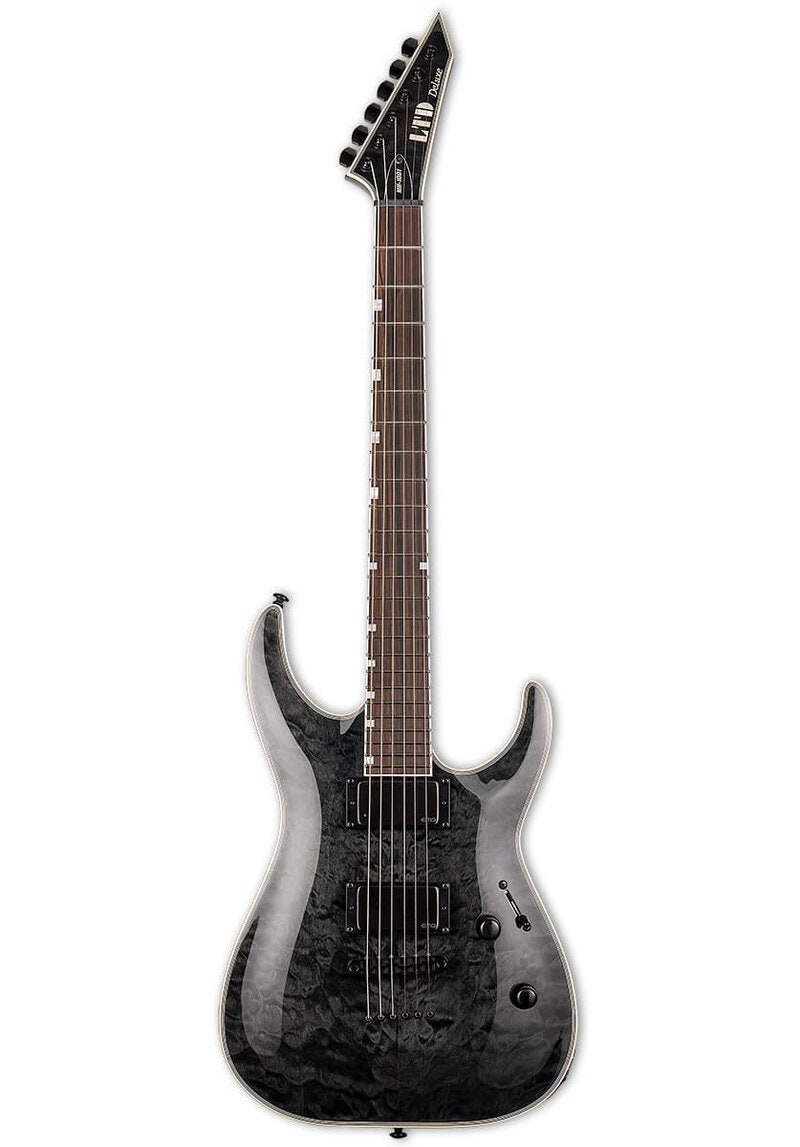 Gitarer i LTD 1000 Series er designet for å tilby den lyden, følelsen, utseendet og kvaliteten som profesjonelle musikere trenger i et instrument, kombinert med prisen som vanlige musikere fortsatt har råd til. MH-1001NT inkluderer komponenter i førsteklasses klasse, som LTD låsesyter, en Tonepros låst TOM bro med strenger gjennom kroppen, og EMG 81/85 Metalworks aktive pickups. Den monterte 3-delte lønnnacken i ask har en macassar ebony fingerboard med 24XJ bånd. Kroppen i mahogny er toppet med fin quilted maple i en flott See Thru Black finish.