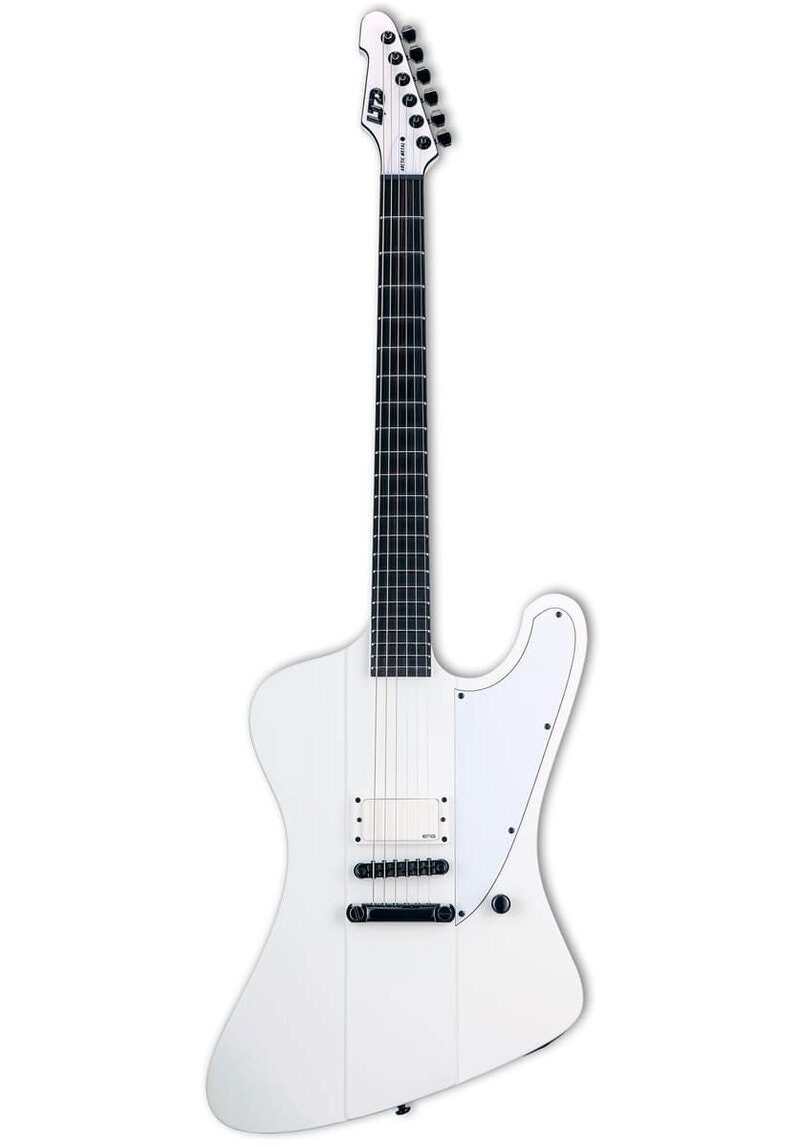 The LTD Arctic Metal Series takes the same design theme of our Black Metal Series and flips the color scheme from the darkest of blacks to the coldest of frozen wastelands. Comparable in build quality to our LTD Deluxe “1000 Series”, Arctic Metal instruments feature a Snow White Satin finish, a single premium-quality pickup with matching white cover, and Macassar ebony fingerboards with no inlays and glow-in-the-dark side markers. The Phoenix Arctic Metal features neck-thru-body construction at 25.5” scale, an aggressive EMG 81TW pickup with black logo, a single volume knob with push-pull control to split the pickup, a TonePros locking bridge and tailpiece, and 22 extra-jumbo stainless steel frets.
