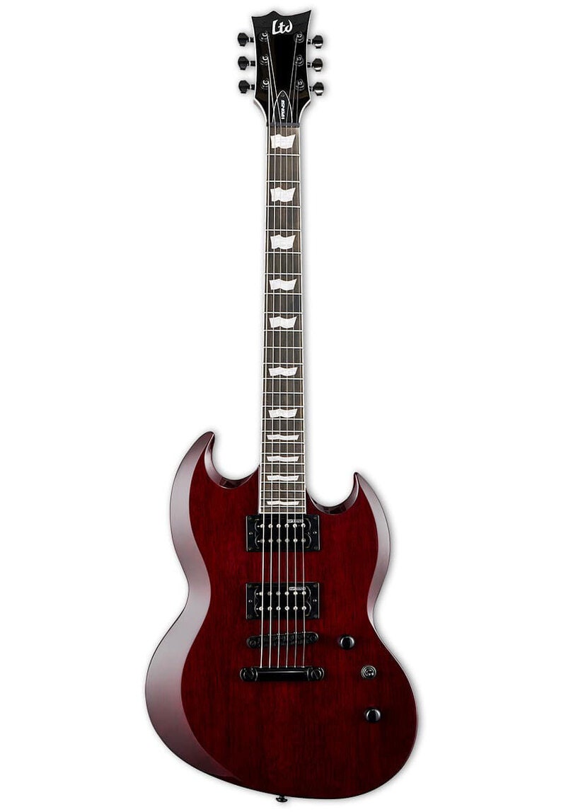 LTD’s Viper Series tilbyr den kule double-cutaway-utseendet som er perfekt for metal, hard rock, blues og mye mer. Med Viper-256 får du den klassiske følelsen av en mahogni-kropp rock and roll-maskin, i ditt valg av Military Green Satin eller See Thru Black Cherry-utførelser, nå oppdatert med svart hardware. Selv med sin overraskende lave pris, tilbyr Viper-256 fortsatt flotte funksjoner som ESP Designed LH-150 humbucker med coil split-funksjon på push-pull-bryteren, LTD stemmer, TOM bridge/tailpiece, og en rask 3-delers mahogny-sett neck med en 24-fret roasted jatoba-vinge.»}