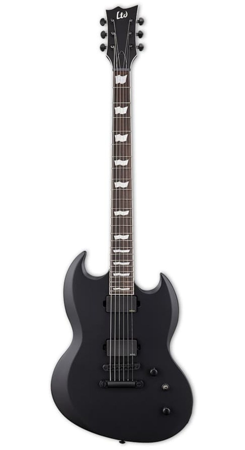 The LTD 400 Series er designet med den profesjonelle utøveren og innspillingsmusikeren i tankene, men er tilgjengelig til en pris som også delingsspillere har råd til. Den asymmetriske dobbelt-cutaway formen på Viper er nå tilgjengelig i en 27”-skala baritonmodell med Viper-400B. Den har en 3-delt mahognymontert nakke på en mahogany-kropp i Black Satin finish, og har Grover stemmeskruer, en TOM bro og tailpiece, og et sett med EMG 85/81 direkte-montere pickups.