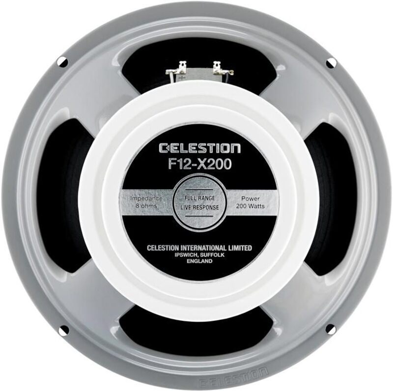 Reaksjonen til The F12-X200 er bemerkelsesverdig nøytral, med Celestion-teknologi innebygd for å sikre at det ikke oppstår uønskede fargelegginger som kan overdøve inngangssignalet. Likevel gir den lettere bevegelses-massen og den rettsidioide kondensen av typen som vanligvis brukes med gitarrhøyttalere, X200 følelsen og den levende responsen til en tradisjonell gitarhøyttaler, og gir all den fysiske tilbakemeldingen du forventer fra å spille gjennom en konvensjonell gitarforsterker. Brukt med forsterker-modeller eller IR-er, i en backline-kasse eller en vinge-monitor, på scenen eller i studioet, høres det ikke bare ut som flott gitarklang, det føles også slik.