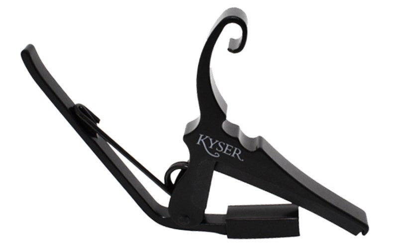 The Kyser Low-Tension Quick-Change Capo works on both acoustic and electric 6-string guitars. The beauty of the Kyser Quick-Change capo is in its simplicity. Kyser pioneered this design and although often imitated, a Kyser is never equaled. There is no substitute for a genuine Kyser Quick-Change capo. Made by hand in Texas, USA. Guaranteed for life.