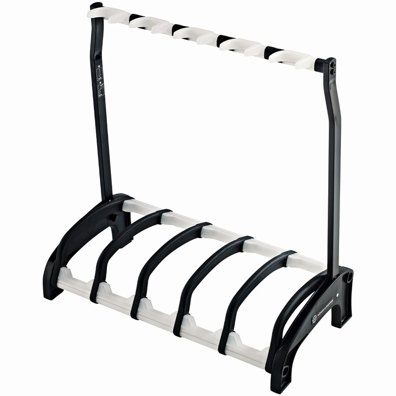 Artikkelnummer 1054664Gitarstativ som trygt oppbevarer 5 stk elgitarer uten å berøre strengene. Hvit & Sort.