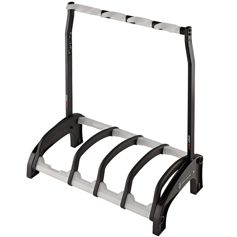The Guardian holder én akustisk og 3 el-gitarer trygge, sparer plass og holder instrumentene på plass. Spesielle polstrede puter sørger for sikker, anti-ripe oppbevaring av gitarer. De fleksible beskyttelsesstengene hindrer gitarene i å snu og beskytter dem mot utilsiktede støt når de tas opp eller legges fra seg. Takket være den innovative foldemekanismen kan Guardian bæres komfortabelt og til og med oppbevares stående. Svært fleksible armer med integrerte plekterholdere beskytter gitarene og garanterer at strengene blir uberørt. Det slanke designet gjør at Guardian kan plasseres rett ved siden av veggen for å spare plass. I tillegg forhindrer de gjennomskinnelige elementene misfarging av nitrolakkgitarer ved stativet. Et valgfritt hjulsett 17510 er også tilgjengelig for ekstra mobilitet.