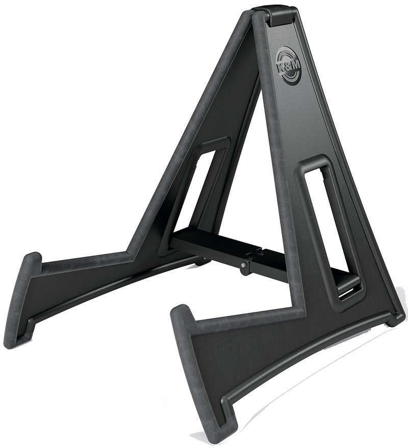 Artikkelnummer 1051927Golvstativ for mindre strengeinstrument, lett vekt, sammenleggbart, robust, svart.