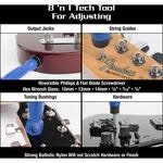 Når det er tid for strengeskift, forenkler Grip One prosessen. Verktøyet kombinerer strengkutter, strengveiv og strengepinneuttrekker for akustiske gitarer. Til slutt har du Octopus 8’n1 Tech Tool, et kompakt multiverktøy med 8 funksjoner, inkludert vendbar skrutrekkerbit (rett- og stjernespor) samt nøkkel for muttere i størrelser 10 mm, 12 mm, 14 mm, 1/2” og 7/16”.