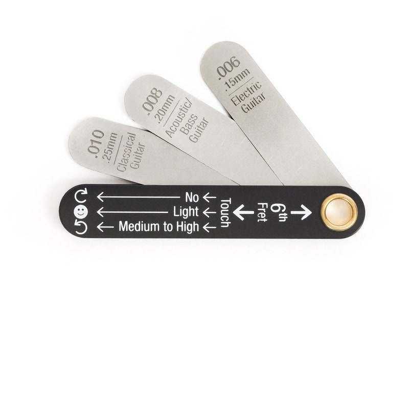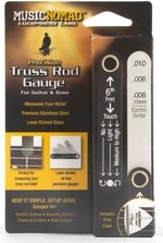 Å måle riktig hvordan halsen er strammet, er et viktig steg når man justerer instrumentet for å sikre optimal strânghøyde. MusicNomad MN600 gjør dette raskt og nøyaktig. Verktøyet leveres med de tre vanligste målene for optimal halsstrekning (.006”, .008”, .010”), og på håndtaket finnes instruksjoner om du skal stramme eller løsne på halsen. Måleverktøyet fungerer like godt for elektriske som akustiske gitarer og bassgitarer. Selve måleutstyret er laget av stål, og medfølger også en avstandsmåler formet som et plektrum for å gjøre prosessen enklere.