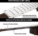 Med denne praktiske og pålitelige beskyttelsen trenger du ikke å maskere gripebrettet med tape eller risikere stygge merker i treverket når du polerer, pusser eller gjør andre jobber på gitarens bånd.