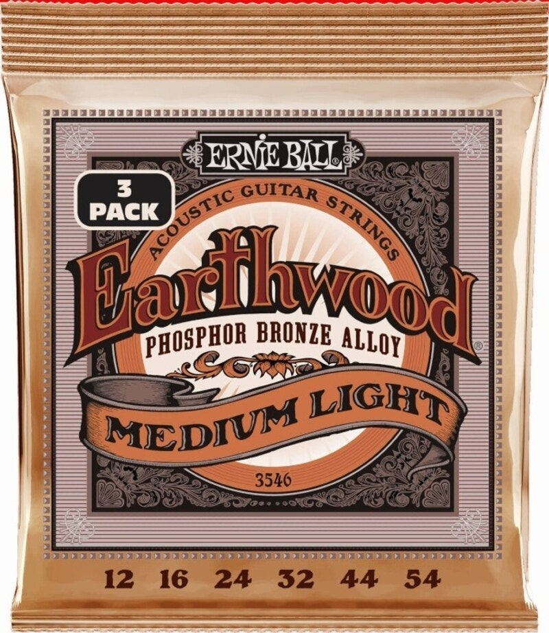 3-pack Ernie Ball Earthwood Phosphor Bronze Medium Light - Strängset til akustisk stålgitar