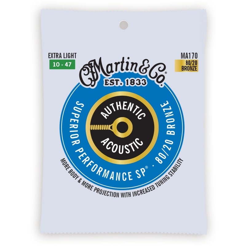 Martin Guitar Authentic Acoustic Superior Performance 80/20 Bronze - Extra Light MA170