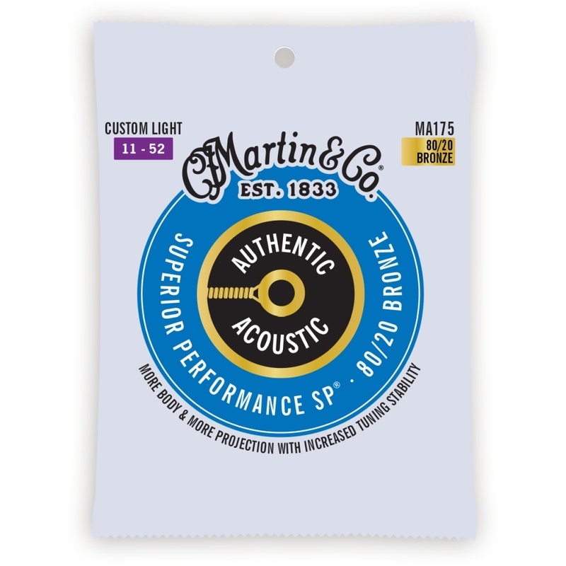 Martin Guitar Authentic Acoustic Superior Performance 80/20 Bronze - Custom Light MA175