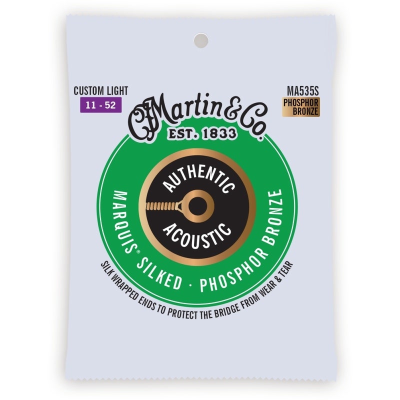 Martin Guitar MA535S Authentic Acoustic Marquis Silked Guitar Strings 92/8 Phosphor Bronze - Custom Light