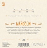 D'Addario's oktavmandolin strenger er designet for bruk med oktavmandoliner i ulike skalaer. De umantelte strengene er laget av rent stål, og de mantelte strengene er av fosfor-bronse.