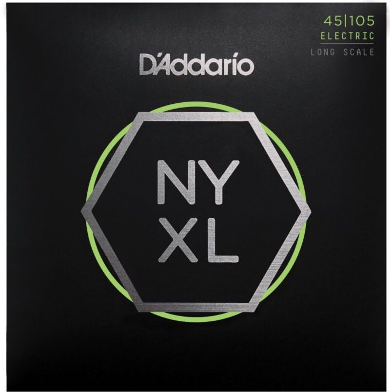NYXL Bass kombinerer D'Addarios stålkolka, NY STEEL, med en omgjort nickelbelagt stålspinning. Denne konstruksjonen gir en dyp og kraftfull basslyd med et fokusert, stramt og punchy mellomregister samt et komplekst overtonesystem. Designet for alle spillestiler har NYXL Bass et større dynamisk omfang og en lengre sustain enn noen annen basssträng.