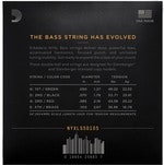 NYXLS50105. NYXL Long Scale, Medium, 50-105, Double Ball End. Designet med doble kuler i henhold til Steinberger spesifikasjoner.