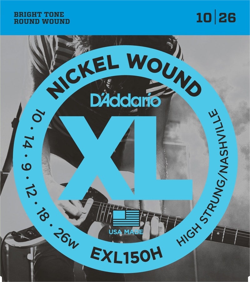 EXL150H Nashville Tuning-strenger, ofte kalt "high-strung," bruker de høyere "oktav"-strengene i et 12-strengs sett for å oppnå en glitrende, klingende lyd. Denne stemmingen er populær blant studio musikere for å doble 6-strengs gitardeler for å skape en 12-strengs effekt.