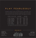 Dette er det kraftigste sett elgitarstrenger D'Addario noensinne har produsert. Mer holdbare enn alle sine forgjengere, setter seg raskere når du strekker dem om, holder stemningen bedre, spunna strenger som har mer output og plain-strenger som er mindre flate og mer livfulle (lydmessig). Resultatet er noe du aldri har opplevd tidligere, uovertruffen styrke og stemningsstabilitet. PLAY LOUD, PLAY STRONG, PLAY FEARLESSLY!