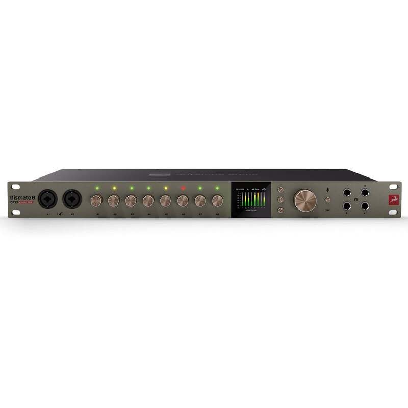 Med 26 × 38 samtidige kanaler – inkludert forforsterkere, line-utganger, ADAT, S/PDIF, reamp, monitor og hodetelefoner – er Discrete 8 Oryx SC bygget for hybride arbeidsflyter der analoge og digitale kilder brukes parallelt. ADAT-I/O tilbyr opptil 16 kanaler ved opptil 48 kHz (I/O reduseres ved høyere samplingsfrekvenser).