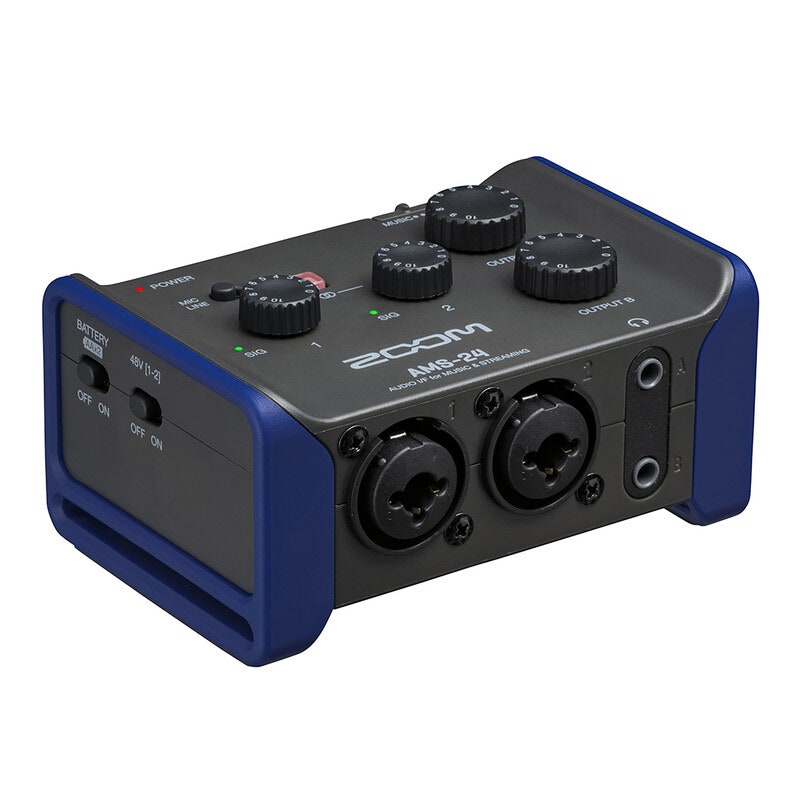 AMS-24 er perfekt for solo-strømmer og multi-instrument sesjoner. Den har to XLR/TRS-komboinnganger sammen med Zooms lave støynivå-forsterkere. Også inkludert er to hodetelefonutganger og to TRS-utganger for eksterne monitorer.
