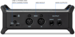 - Hodetelefonutgang og 2x TRS hovedutganger