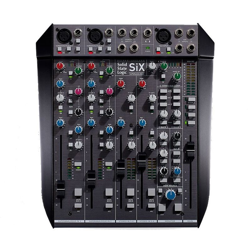 For den ukyndige ser det ut som hvilke som helst annen kompakt skrivebordsmikser. Se nærmere etter, og som alle SSL-konsoller, avslører SiX en omhyggelig utformet funksjonssett drevet av et besettende ønske om total fleksibilitet for å dekke alle kreative muligheter. Den kan være liten, men SiX er en klassisk SSL-design. Den bærer DNA-et fra 40 års ekte ekspertise innen kreativ studioarbeid. Lytt til SiX, og du vil oppleve den ulastelige lydkvaliteten som er kjennetegnet på hver SSL-konsoll. Den er kraftig og intuitiv. Inspirerende og givende. SiX er en kondensert profesjonell konsoll for bruk i studio, etterproduksjon, på scenen og for podcasting. SiX tilbyr stort konsolllyd og et imponerende sett av nyttefunksjoner i et format som er så lite at du kan legge det i en veske og ta det med deg hvor enn du trenger det. SiX er enestående verdi; den tilbyr to innspillingskanaler med SuperAnalogueTM-mikrofonforforsterkere, to-bands EQ, en essensiell ett-knotts versjon av den klassiske SSL Channel Compressor, en ny to-bands Channel EQ, innsatser og 100mm faderkontroller. Det er en to-knotts versjon av den legendariske G-Series Bus Compressor på hovedmiksbussen og den unike Listen Mic Compressor på Talkback. I miksmodus er den et svært kapabelt tolblets summe-system som gir analoge detaljer, dybde og bredde til miksene dine.
