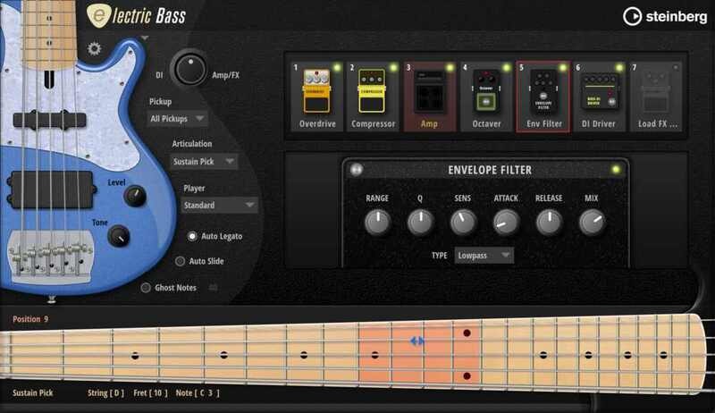 - Detaljerte sampled elektrisk bass med sju spillteknikker inkludert fingerstyle, slap, muting og plukking