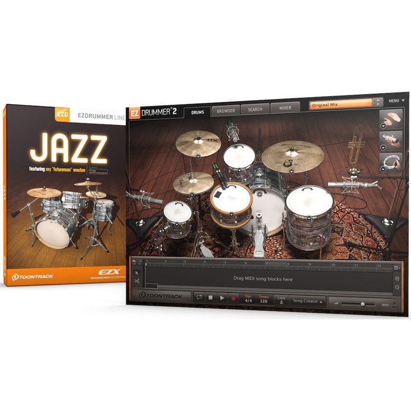 Toontrack har igjen levert et svært imponerende bibliotek, denne gangen innen jazz-sjangeren. De har hatt stor glede av å sample den legendariske trommeslageren og pionéren Roy Wooten (Futureman). Futureman har vunnet flere Grammy-priser som komponist, tenkerog og multiinstrumentalist, og har vært en pioneer når det gjelder bruk av samplede trommer siden 1985. Han har også delt scene og medvirket på flere album med mange jazzlegender. Roy begynte å spille akustiske trommer som gutt med brødrene sine i Virginia. Han har gått en lang vei siden den gang, og er nå blant annet kjent for å bruke SynthAxe-Drumitar til å trigge trommesamples. Dette har han selv oppfunnet og utviklet for å uttrykke sin egen revolusjonerende tilnærming til jazzen med den banebrytende gruppen Bela Fleck and the Flecktones. Innspillingen av Jazz EZX ble gjort i Blackbird Studios i Nashville og har blitt en referanse når det gjelder hvordan man vil sample perkussive og vanlige instrumenter i fremtiden.