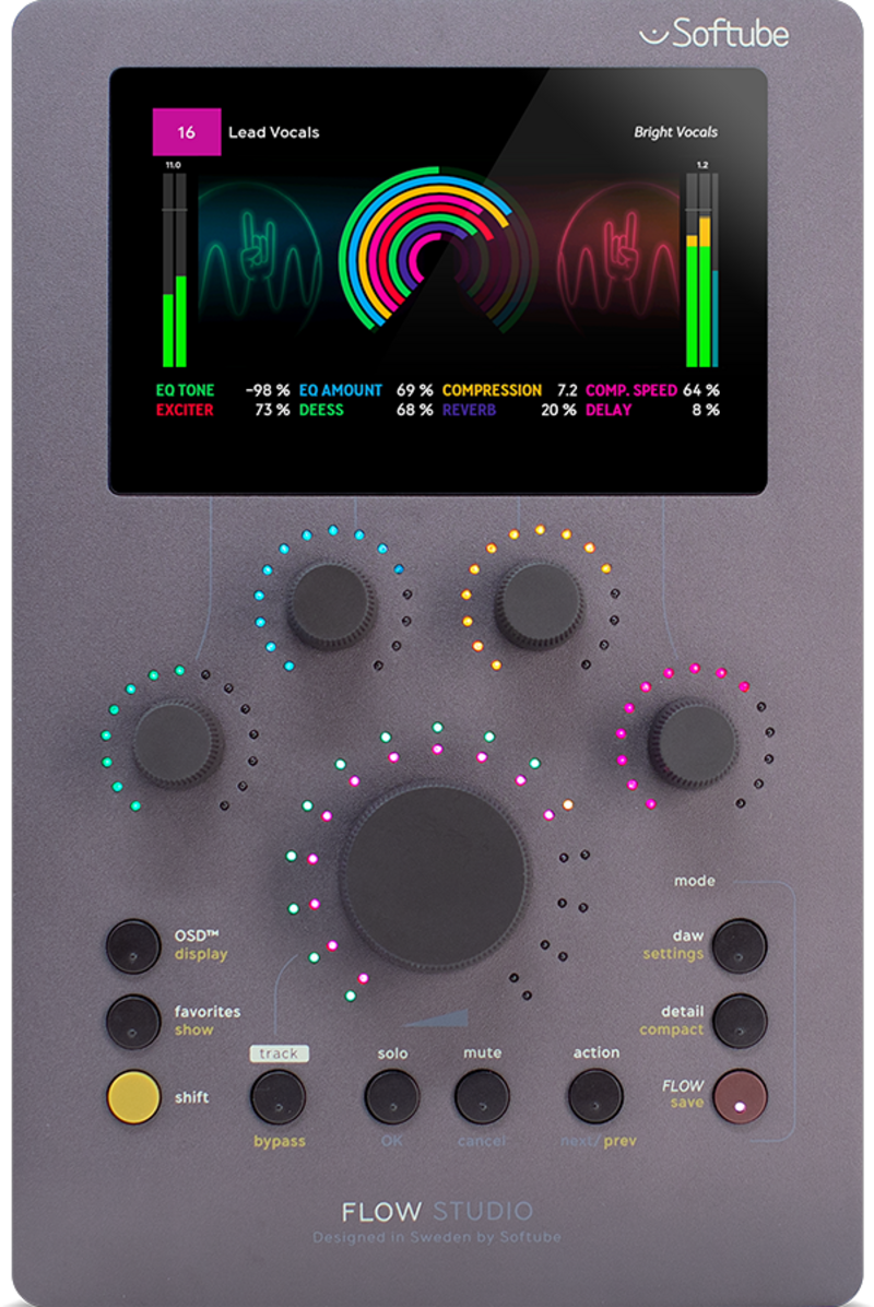 4.3” high resolution screen with a variety of visualizations, such as EQ curves, compression, metering, and inspiring graphics to display.