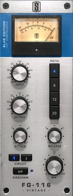 FG-116 Blue Vintage recreates the sound of two “rev A” FET compressors. Both compressors sound rich, colorful, and musical.